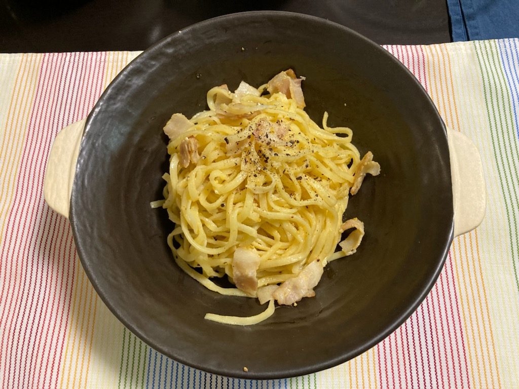 こちらがお客様が作ったカルボナーラです。美味しそうですね。